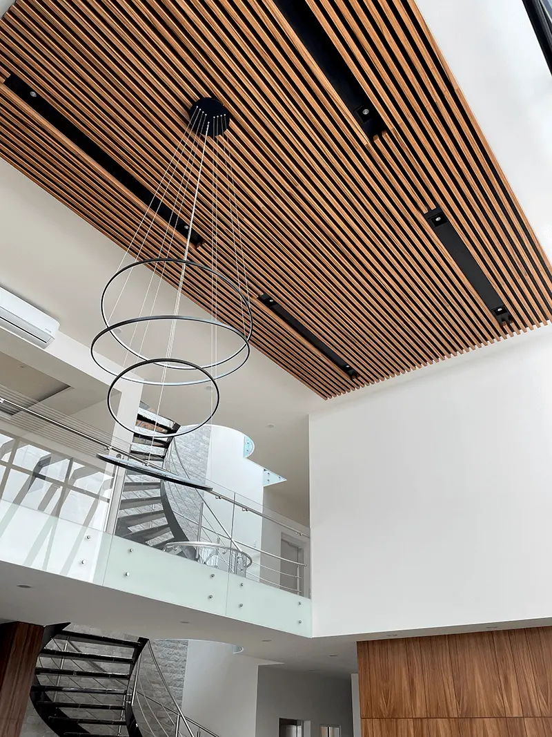 Parota, melaminas de altos brillos y vitropiso cerámico gran formato